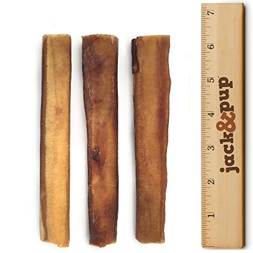 -. Feature : TOP QUALITY & HEALTHY - Jack&Pup Premium Grade Extra-Thick Bully sticks are sourced from grass fed, free range cattle; raised without any added hormones or antibiotics, resulting in a healthier and better tasting treat. Processed in a USDA Human Grade Certified and Inspected facility. Each bully stick is handpicked and inspected to ensure quality, texture and perfect consistency. Your canine will enjoy its' delicious and fresh meaty flavor! / 100% DIGESTIBLE & SAFE - Guaranteed to be fully digestible and guaranteed not to cause any side-effects. Jack&Pup Bully Sticks are a natural, low-fat and protein-rich, one-ingredient dog chew treat, being 100% beef muscle without any additives or artificial ingredients. Our careful and natural preparation of the bully sticks effectively eliminates all bacteria and contaminates; making its' consumption fully safe. / SUPPORTS HEALTHY TEETH & GUMS - By ensuring its' consistently perfect texture and thickness, Jack&Pup Bully sticks helps keep the dog's teeth healthy and clean. Effectively removes tartar build-up, strengthens the gums, removes plaque and promotes an overall enhanced oral health. / EXTRA THICK SIZE & LONG LASTING - Each Bully Stick is hand selected and sorted to ensure its' consistent thickness. Jack&Pup Extra-Thick Bully Sticks are never stretched, resulting in a 30% thicker than standard bully stick, thus lasting much longer than regular bully sticks. Jack&Pup Bully sticks are extremely safe and will never splinter. Keep your dog occupied for many hours, while chewing away on this savory beefy and flavorful dog treat! / NATURALLY ODOR FREE & FRESH - Jack&Pup Premium Bully Sticks are carefully prepared by boiling, roasting and smoking; then drying in a slow process. The multi-step process effectively locks-in the natural beef flavor resulting in an enhanced richness that dogs love. At the same time, the proP.R.Iety process naturally eliminates all odors, without the use of any additives or chemicals. Stays fresh longer without any added preservatives.