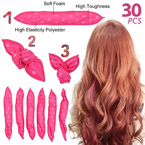 Ameauty Foam Hair Rollers for Long Medium Hair, No Heat, No Harm, Soft and Can be Used at Night for Save Time, Styling Tool For Women and Girl (30Pcs, Rose)