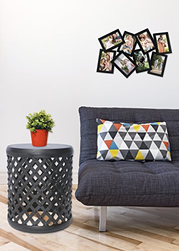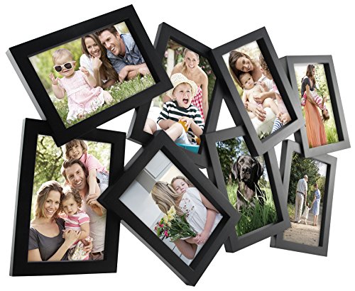 -. Feature : Holds 8 4x6-inch photos / High quality plastic makes the frame lightweight, durable and easy to hang / Hangs vertically or horizontally attached hangers / Black finish / Measures approximately 15x22.5 inches