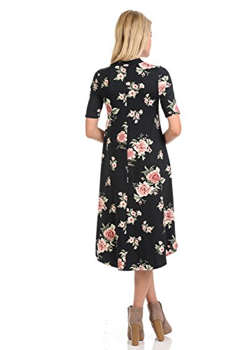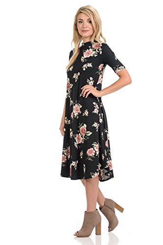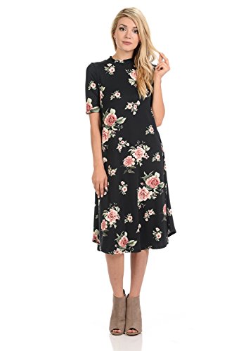This lovely dress features half sleeves, mock neckline, midi length and figure flattering A-line silhouette. It is made of soft jersey knit that has great drape.