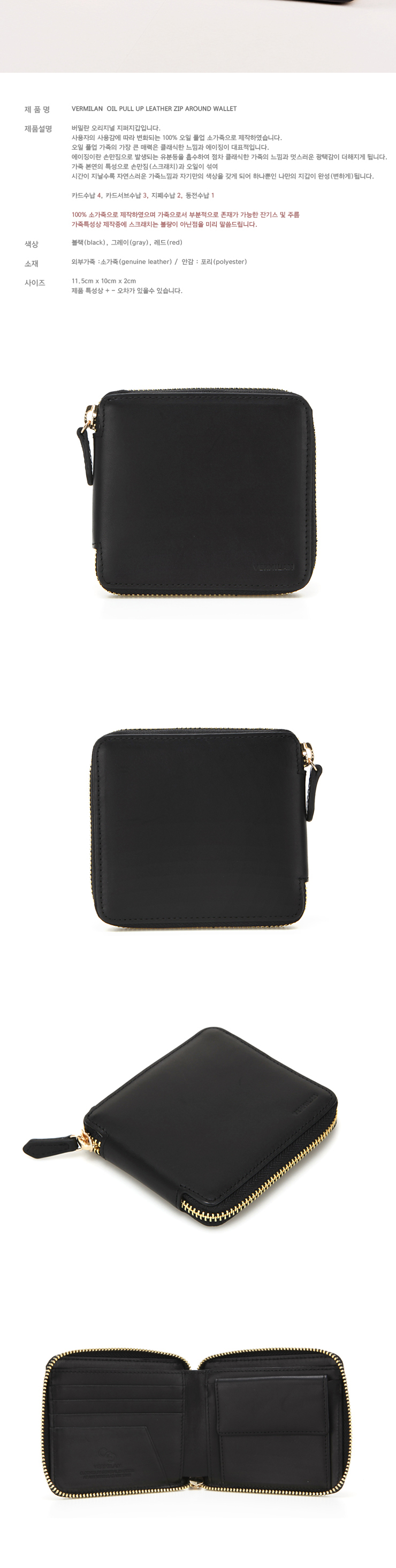 [VERMILAN] oil full up harf_wallet - black