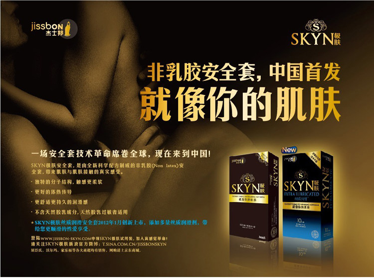 Product Name: Jissbon SKYN very skin packaging the total number of (pieces): 10 Origin: Thailand approval number: SFDA (into) the word 2010 No. 2661351 Material: Polyurethane Nominal Size: Large thickness: General appearance: Glossy features: silicone lubricating fragrance: Unscented brand: Jissbon Model: SKYN very skin