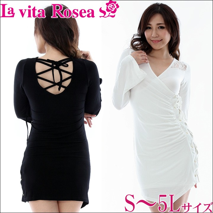 カシュクールサイド 編み上げ ワンピース(RQ) 大きいサイズ 春 セクシー レディース ギャル服 ギャル 大人 13号 15号 17号 19号 LL 2L 3L 4L 5L 6L 6L