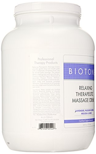 ReleaseDate : 2014-10-10 Studio : Biotone Publisher : Biotone Binding : Health and Beauty Product Description Biotone Relaxing Therapeutic Massage Creme is all natural. This natural massage creme is healing and soothing to the skin. Contains certified organic botanicals of lavender, passion flower, Melissa, chamomile and sage to reduce tension, ease stress and promote complete relaxation. Pure essential oil of lavender gives a light scent that calms the body and mind. Provides a smooth glide with a moisturized, non-greasy finish. Gallon. 0