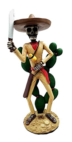 -. Feature : This This DOD Bandito W/ Nopales Figurine measures at 7" tall, 3"long, 2.5" Wide / This This DOD Bandito W/ Nopales Figurine is made of designer composite resin, hand painted and polished / Day of the Dead or Dia de los Muertos is a Mexican holiday celebrated throughout Mexico, in particular the Central and South regions, and acknowledged around the world in other cultures. It starts on October 31st and ends on November 2nd. / This skeleton bandito is celebrating his time with Pancho Villa. He is dressed in the finest outfit his sombrero and a very sharp machete in his right hand. He makes a perfect decor for Halloween and Day Of The Dead. / This DOD Bandito W/ Nopales Figurine is an Atlantic Collectibles exclusive collection.