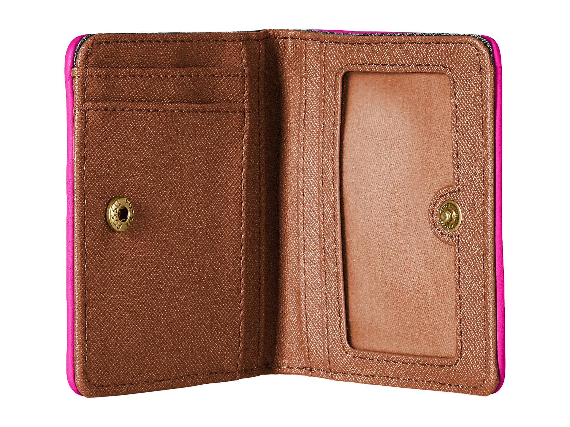 | Product Information SKU: #9018663This crisp and clean Fossil? Emma Mini Wallet with RFID is the perfect complement to your look.Made of leather.Snap closure.Exterior back zip pocket.RFID protection.Lining made of textile and synthetic material.Four interior slip pockets.Two interior credit card slots.Imported.Measurements: Bottom Width: 3 1?2 in Depth: 1?4 in Height: 3 in Weight: 2.6 oz |