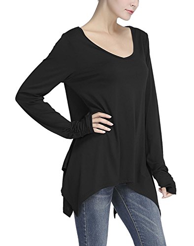 -. Title : ロング Tシャツ 長袖 カットソー アシンメトリー Vネック ゆったり トップス