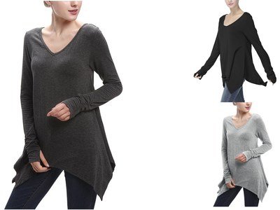 -. Feature : ロング Tシャツ 長袖 カットソー アシンメトリー Vネック ゆったり トップス / サラッとした肌ざわりで、裾に向かって広がるアシンメトリーデザインがお洒落なカットソーです。 / サイドにスリットがあるので、ゆったり、楽々でマタニティウェアとしても使用できて、体型カバーもしてくれます。 / 素材 : ポリエステル71%コットン29%  / サイズ : M L XL