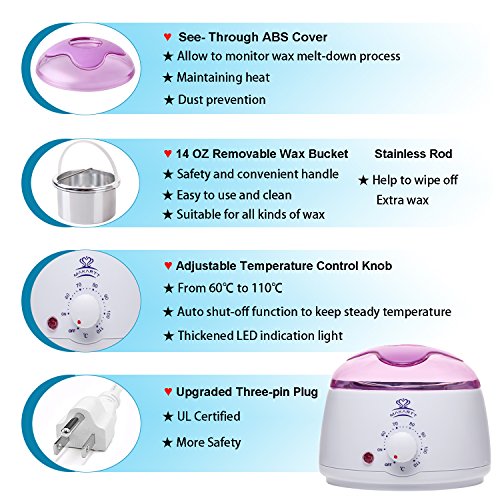 ✩Adjustable Temperature with Indicating Light: The wax warmer equips a wide range of temperature from 60 to 110 Celsius,speeding up the wax warming in a nice consistency.Auto-shut-off function in high temperature remains the wax in liquid but not overheat.
