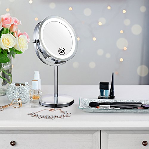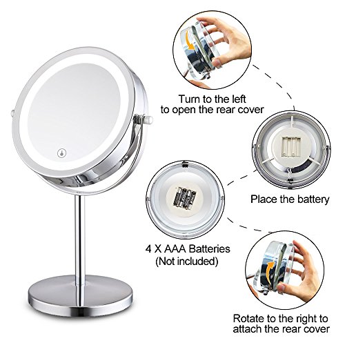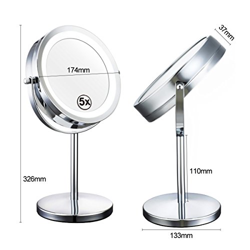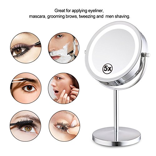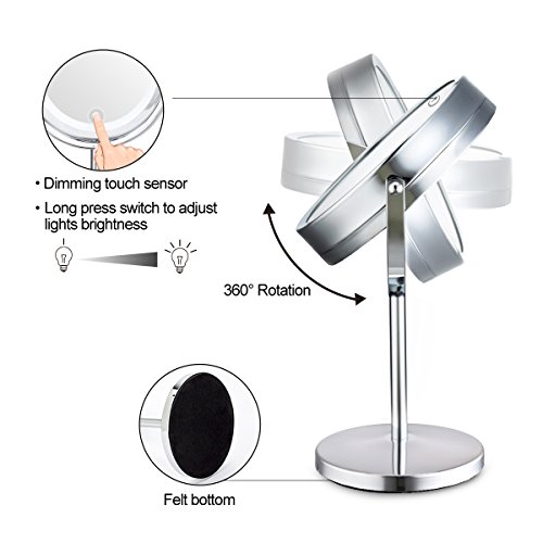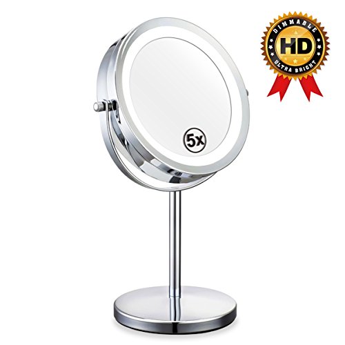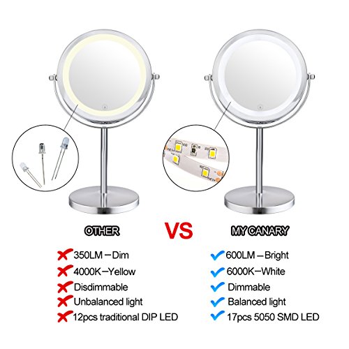 My Canary 7in LED Makeup Mirror is a Cordless, High Definition Clarity and Brightness adjustable, 1X / 5X Magnification double sided vanity mirror.