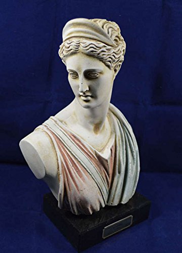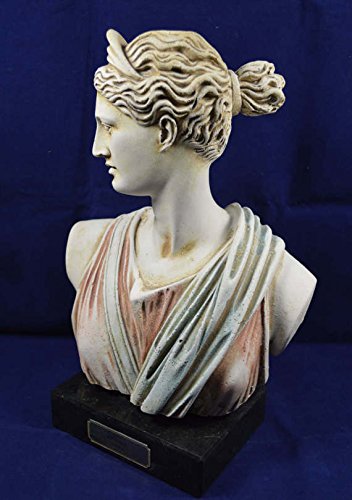 Studio : Estia Creations Publisher : Estia Creations Binding : Kitchen Product Description Artemis was one of the most widely venerated of the Ancient Greek deities. Her Roman equivalent is Diana. Homer refers to her as Artemis Agrotera, Potnia Theron: "Artemis of the wildland, Mistress of Animals". She was the Hellenic goddess of the hunt, wild animals, wilderness, childbirth, virginity and protector of young girls, bringing and relieving disease in women; she often was depicted as a huntress carrying a bow and arrows.(B431) Details: Condition: New, reproduction made in Greece. Approximately Height: 26.5cm - 10.4 inches Width: 17cm - 6.7 inches Weight: 2.5kg Material: Casting stone 0