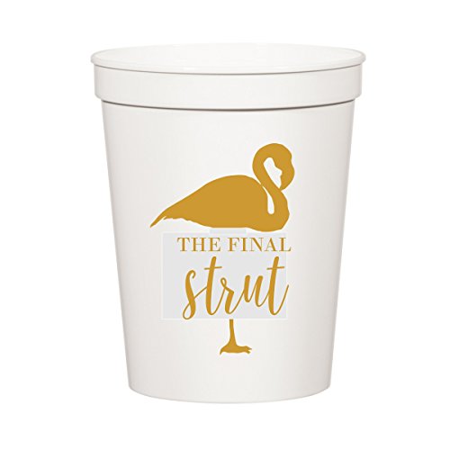 The Final Strut Flamingo Cups, Flamingo Bird, Metallic Gold and White Party Stadium Cups