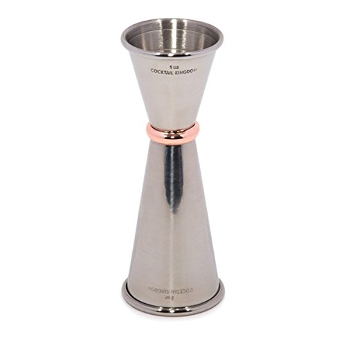 -. Title : Cocktail Kingdom Japanese Style Jigger 1oz / 2oz - Stainless Steel, Mirror Finish / Copper-Plated Ring