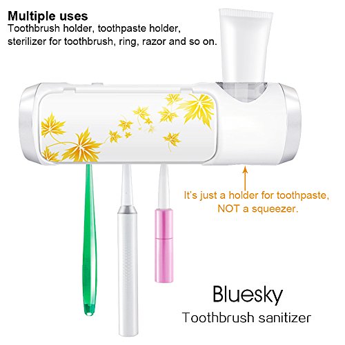 - 3. Multiple uses: It is a toothbrush holder, toothpaste holder, sterilizer for toothbrush, ring, razor and so on. Note: It’s just a holder for toothpaste, NOT a squeezer.