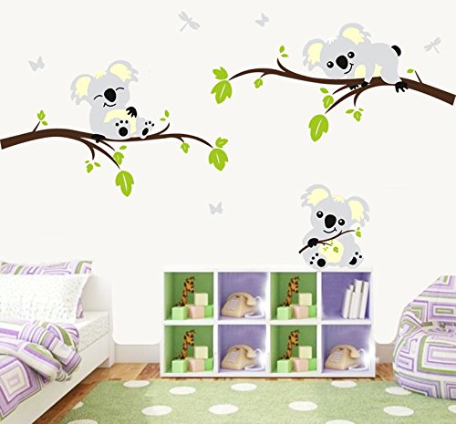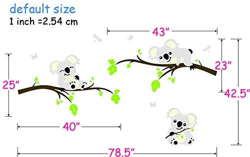 Large Koala Tree Branch Wall Decals DIY Wall Decals Peel and Stick Wall Sticker Nursery Baby Room Wall Stickers Wall Art Home Decor, 78"W x 42.5"H