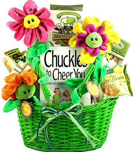 -. Feature : This light and fun gift basket is sure to cheer some one up, even if they don't know they need cheering up / This bright, colorful gift basket is full of gourmet goodies that are sure to lift anyone's spirits / All Gift Basket Village gift baskets are hand made in our own facility with specially selected items that are accentuate the theme of the gift and make you look like a hero