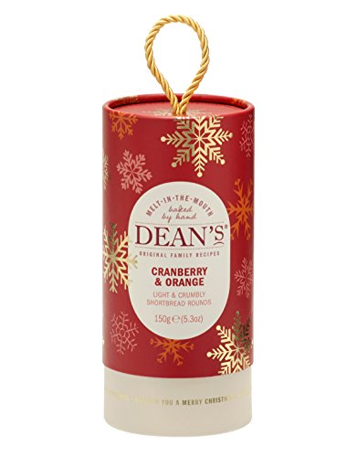 -. Feature : Dean's new Christmas gift tube contains delicious, light and crumbly shortbread rounds, hand-baked with cranberry pieces and a hint of orange - guaranteed to melt in the mouth.