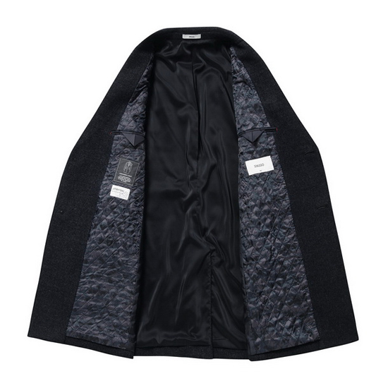 - 잔조직 패턴을 적용하여 모던한 남성 코트.