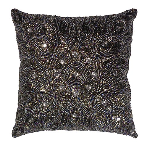 This absolutely beautiful 100% handmade and hand beaded pillow measures 16"x16". Its available in a myriad of colors. It's an elegant accessory that will complement multiple decors and settings