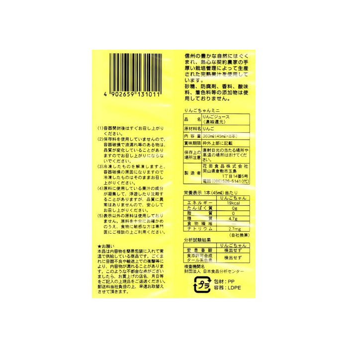 원본상품명: りんごちゃんミニ 45ml×8本×15袋