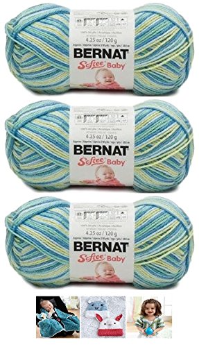 - Bundle includes 3 skeins of Bernat Softee Baby in Aquarium Varg (Variegated)Three patterns included are Car Seat Blanket, Knit Hat with Ears and Lapel Jacket to crochet.
