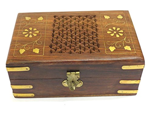 Affaires Wooden Jewelry Box-jewelry Hand Carved with Intricate Carvings Gift Items 6” x 4” W-40138