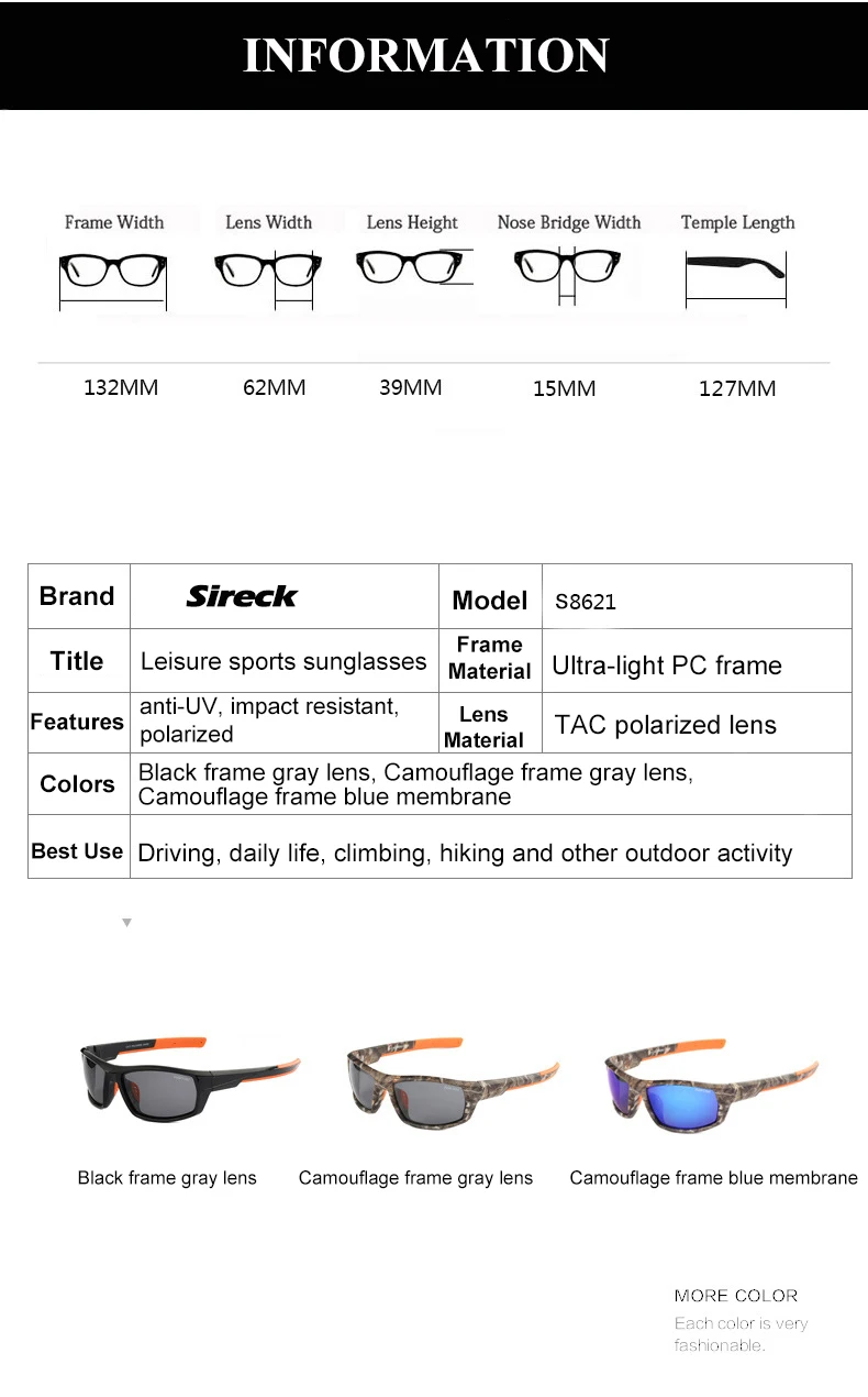 Function:Polarized, UV protect, filtering