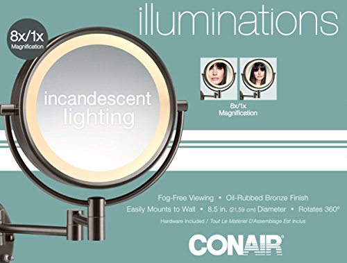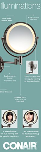 Conair Round Shaped Double-Sided Wall Mount Lighted Makeup Mirror; 1x/8x...