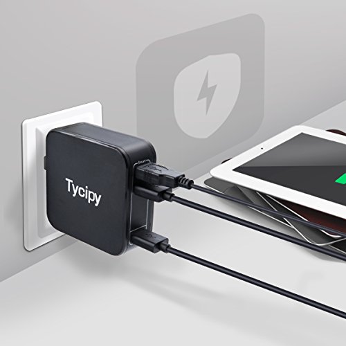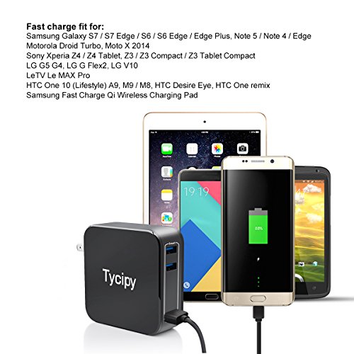 Quick Charge 3.0,Tycipy 3-Port 40W USB Wall Charger with SmartID Technology for Galaxy S7/S6/Edge/Plus, Note 5/4, LG G5 V10, HTC 10 and More + 3ft Fast Micro USB Cable