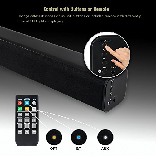 Easy to Setup and Operate: Except operating sound bar by pressing the button on the end, a dedicated remote control will allow you to control the sound bar much easily, such as turn the power on/off, change the modes, adjust bass/volume and perform other operations etc.