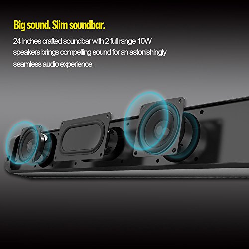 Akixno 20W 2.0 Channel Bluetooth Soundbar Speaker The 24 inches soundbar can not only be connected with your TV/PC, but also can be used as a stand-alone speaker for your phone/iPad. Dual 10W