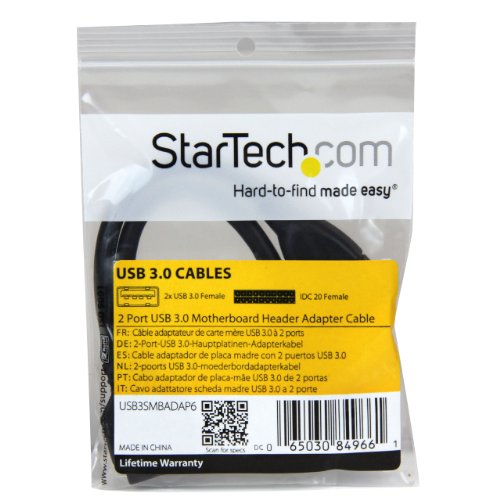 StarTech.com 2 Port Internal USB 3.0 Motherboard Header Adapter Cable with Internal 20-Pin Header to 2x USB 3.0 A 6-Inch Female Adapter Cable (USB3SMBADAP6)