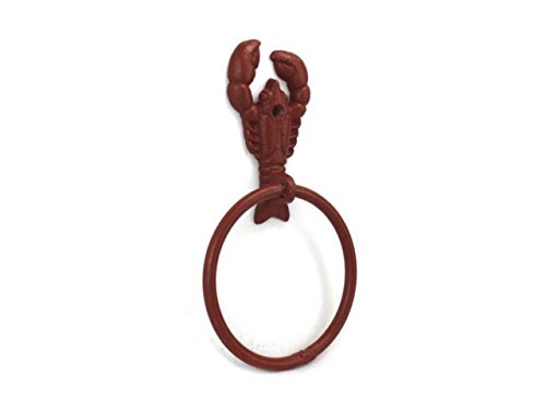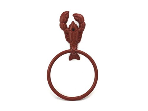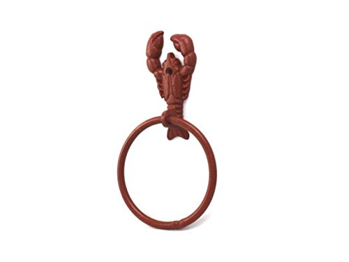Hampton Nautical K-9007-ww-red Red Whitewashed Cast Iron Lobster Towel Holder 9" - Lobster Decoration - Beach Bathroom Decor - Cast Iron