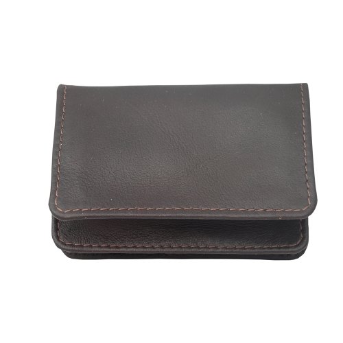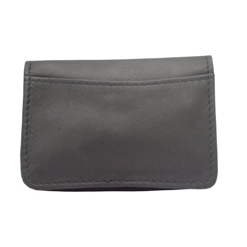 Flap-over to gusseted pocket for credit cards and/or business cards, open pocket, and i.d. Window. Additional open pocket for cards on the back. Fits up to 50 cards.