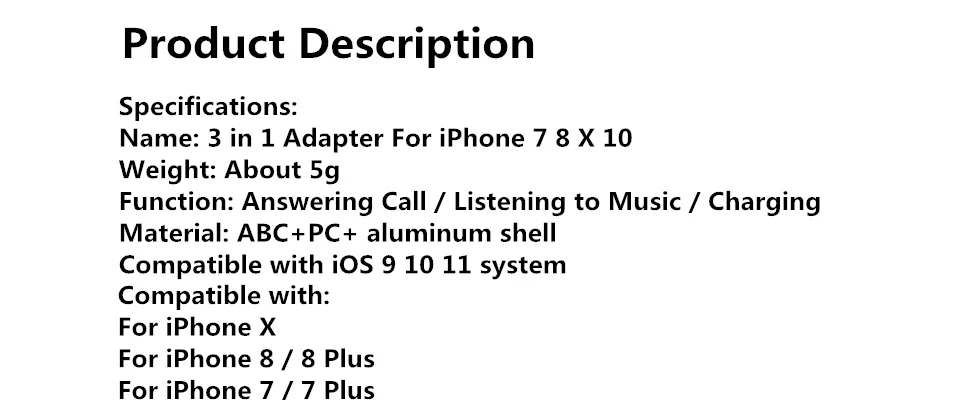 Input Voltage:5V/1A 3 in 1 Adapter For iPhone 7 8 10 X