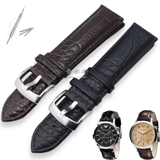 | [해외]남성 시계 악어 패턴 가죽 스트랩 액세서리 22 미리메터 블랙 브라운 아르마 ar24472447 ar2433 ar2432 쿼츠 시계 스트랩 |