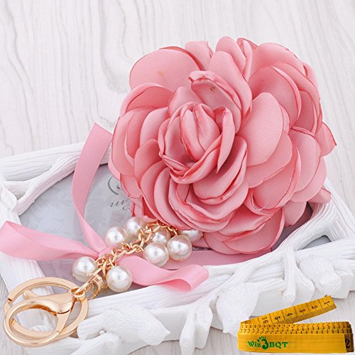 Cute & Adorable & Charming & Honorable---Gold-plated keychain with artificial pearls & emulational cloth rose flower and in well-designed shape. Bring you convenience and make your keys more conspicuous, attractive and draw happy attention.