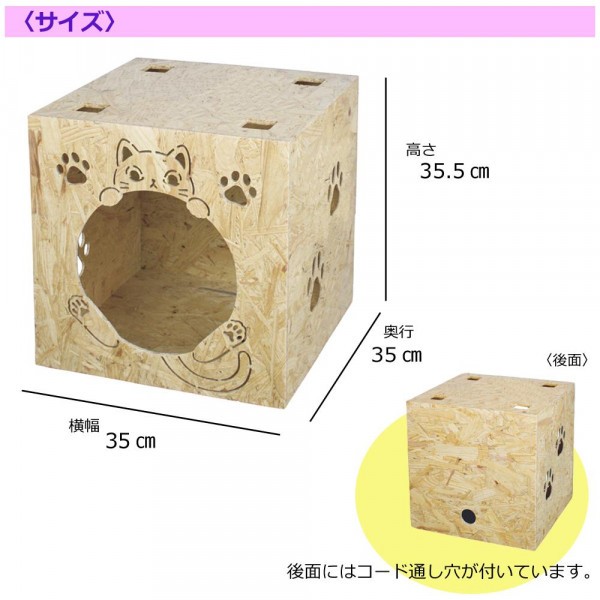 猫ちゃんの好奇心をそそるキャットハウス。キャットハウスシリーズ商品とスタッキングできます。 製造国:中国 素材・材質:OSBボード 商品サイズ:35×35×35.5cm 重量:3400g 仕様:内寸:33×33×34.5(cm)組み立て式 付属品:ドライバー、取扱説明書 ※サプライヤー直送品 ご注文後2~3営業日後の出荷となります【商品名】キャットハウス スタッキング G-2503N