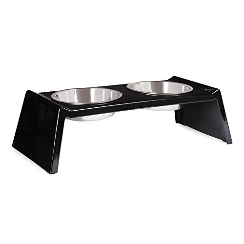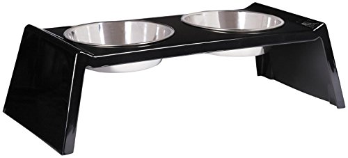 Studio : Leynas Pup Palace, LLC Publisher : Leynas Pup Palace, LLC Binding : Misc. Product Description Zack Zoey Retro Raised Melamine Diners add a sleek designer touch to doggy dining. Eating from a raised bowl can help dogs' digestion. ??Raised melamine base holds two stainless steel bowls ??All pieces are dishwasher safe ??Available in two sizes Materials: Melamine and stainless steel Care: Dishwasher safe Sizes: Small measures 12¾"L x 6¼"W x 3¾"H; Large measures 16"L x 7½"W x 4½"H Capacities: Small holds 6 oz. / ¾ cup / 177 ml; Large holds 12 oz. / 1½ cups / 354 ml 0