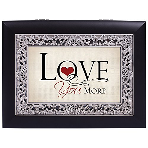 Love You More Red Heart Matte Black Metallic Silver Tone Inlay Jewelry Keepsake Box