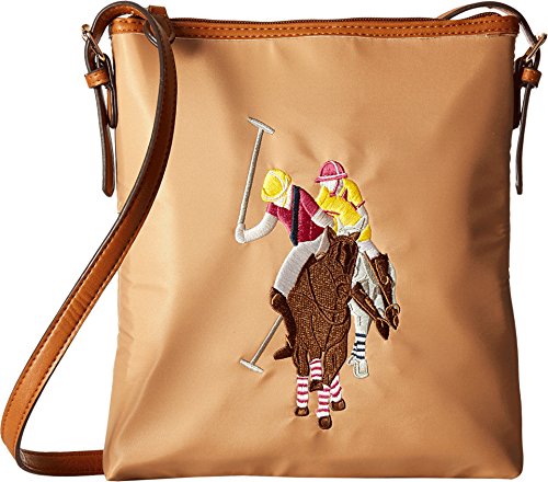 Top-zip closure. Adjustable cross-body strap. Exterior features embroidered brand logo at front and back-zip pocket. Interior features zip pocket and multi-slip pockets. Lined. Imported.