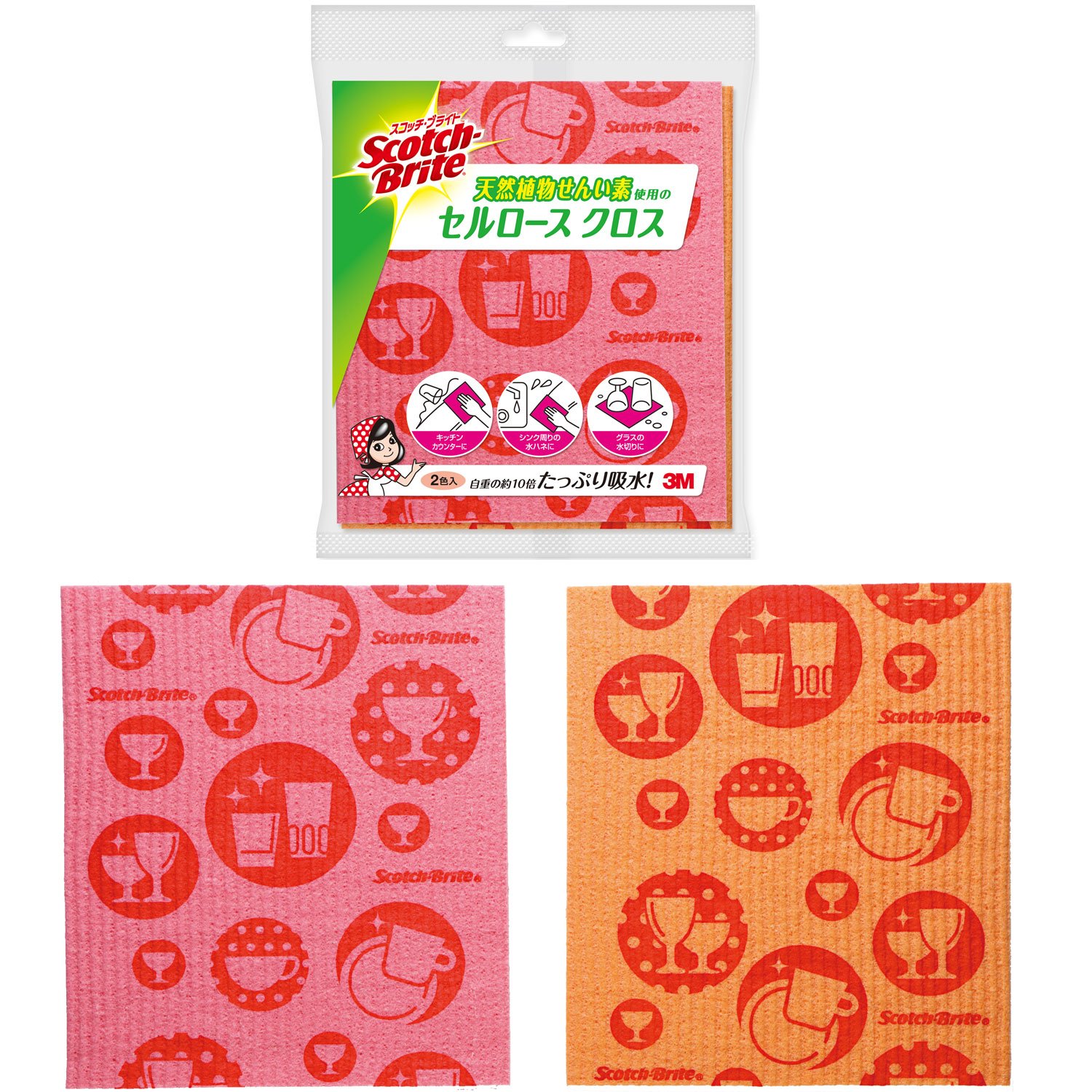 3m Scotch Brite Cross-cellulose Sponge Cloth (Pink & Orange)