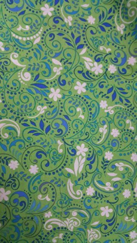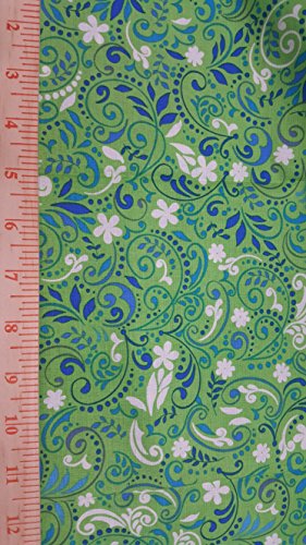 Green Floral Scroll Cotton Fabric by Brother and Sister Designer Studio Precut Fabric (1 Yard)