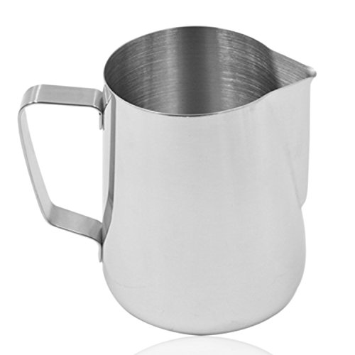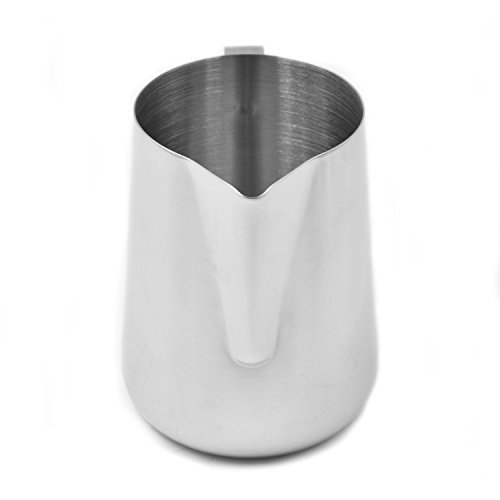 Product Description The frothing pitcher feature is a molded pouring spout and a sturdy handle. Comes with 6-ounce capacity. Measures 3-3/4-inch height. 0