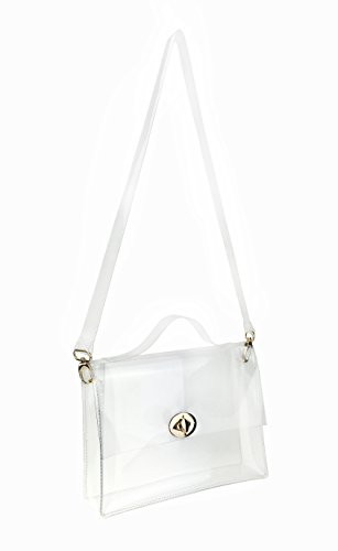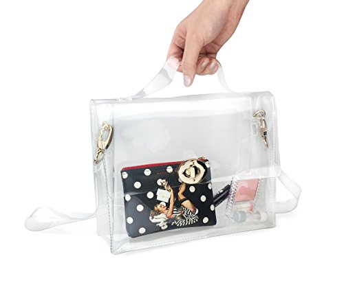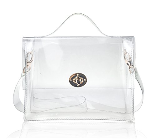 Product Description Hoxis 2016 High Fashion PVC Transparent Satchel Summer Beach Cross Body Clearly Messenger Bag @@YOUR PERFECT SUMMER PURSE Structured plastic in transparent. Gold-tone hardware. Foldover flap at main compartment with two push-clasp closure. Removable plastic shoulder strap. Clear exterior face and foldover flap revealing interior. Approx. 10" length, 8" width, 3" depth. These transparent handbag might help you keep things a little more neatly since the bag contents are on display for the world to see. How do you feel about transparent handbags, would you try this trend? Our commitment is to offering the latest trends in purses and other first-rate lady bags. Our range of products are for professional or casual use, and we have products for all ages and professions. You will always find that our selection incorporates great design, and quality construction. *Fulfilled by 'Hoxis', We offer a Standard Delivery service which usually takes 7 to 15 working days for your goods to arrive, from receipt of your Order. However delays are occasionally inevitable due to unforeseen factors. The delivery charges are applied and there is one delivery charge per Item. Hoxis® delivery charges are $3.99 per item. * Official Hoxis® product made and sold exclusively by Hoxis, All products includes 'Hoxis' Label and Tags, US Trademark Registration Code: 86580316 *Package: Individual Polybag or Box Packed. *Due to monitor variations colors may appear slightly different. 0