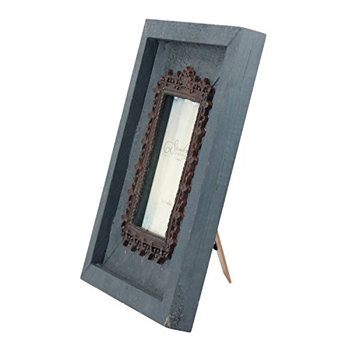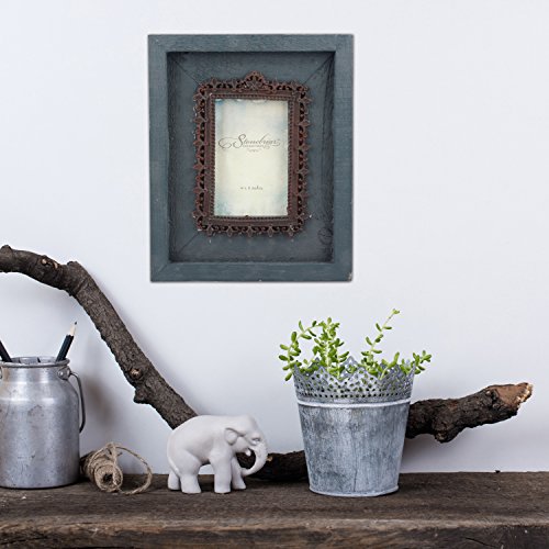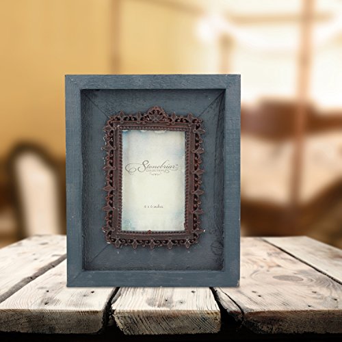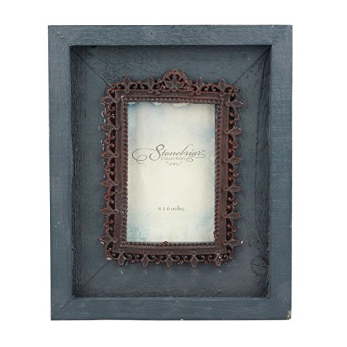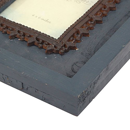 Stonebriar Distressed Blue Wood and Vintage Metal Filigree Photo Frame