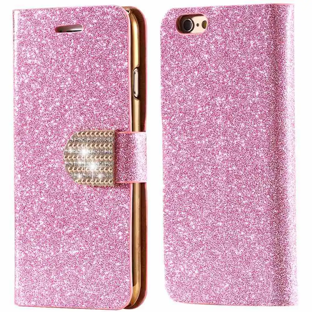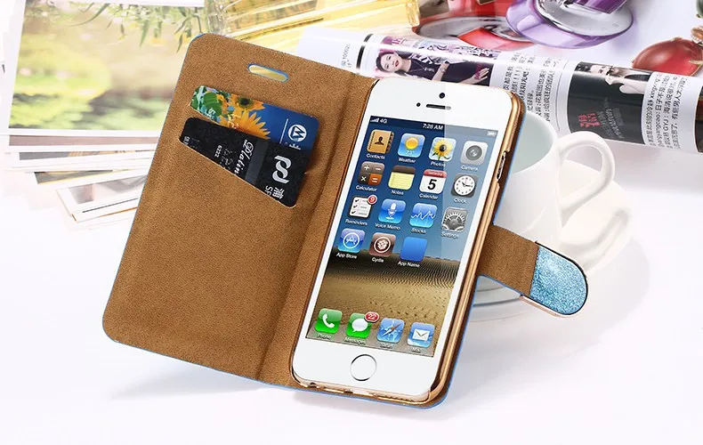 Feature 1:Mangnetic Buckle Leather Cases For iPhone 5 se 5s Flip Glitter Case
