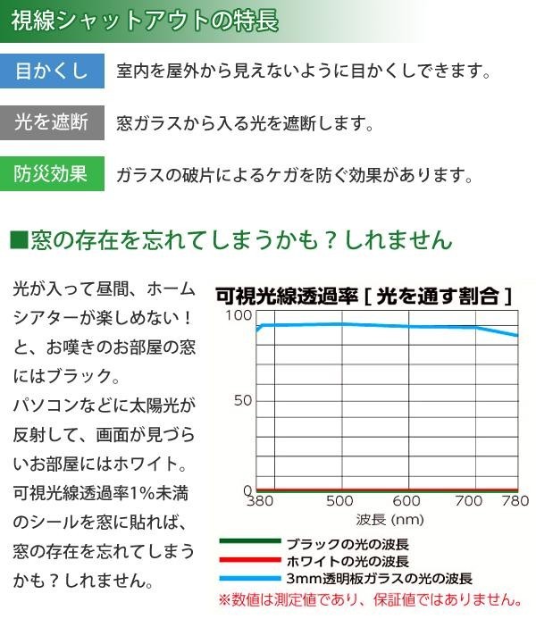 | 仕様 | 水をつけて貼るシールタイプ 屋内・屋外両用 耐熱温度:80度 耐候年数:5年 ●貼れる面 透明板ガラス(線なし) 凸凹ガラス(線なし/平らな面) ●貼れない面 透明板ガラス(線入り) くもりガラス(平らな面・ザラザラ面) 凸凹ガラス(線入り/平らな面・凸凹ガラス面、線無し/凸凹ガラス面) 複層ガラス(ペア) |