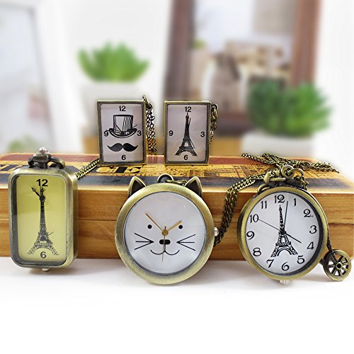 상품명: [모노G] MONOZY 넥크리스 시계 앤틱 풍회중 시계 펜던트 수납대 (D:고양이)