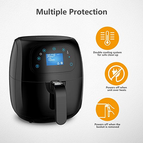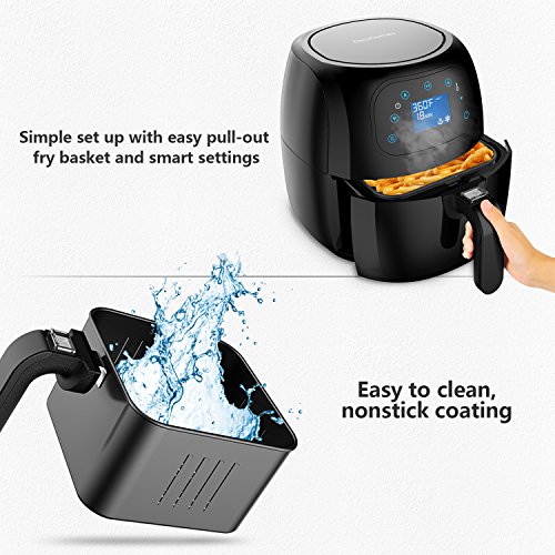 Air Fryer Touchscreen, Electric Power Air Frying Technology with 8 Bulid-in Cook Setting, Touch Sensitive Controls, 1400W, 3.5L, Oil Free (Black)